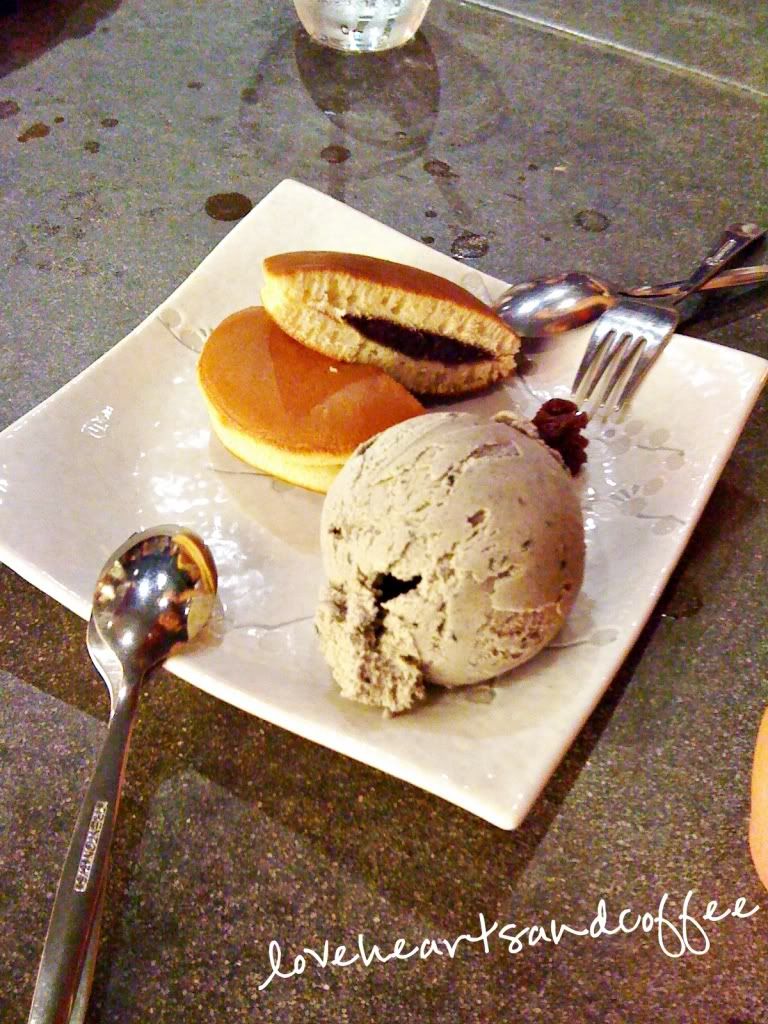 Dessert!! Black sesame ice cream & Japanese red bean pancake.